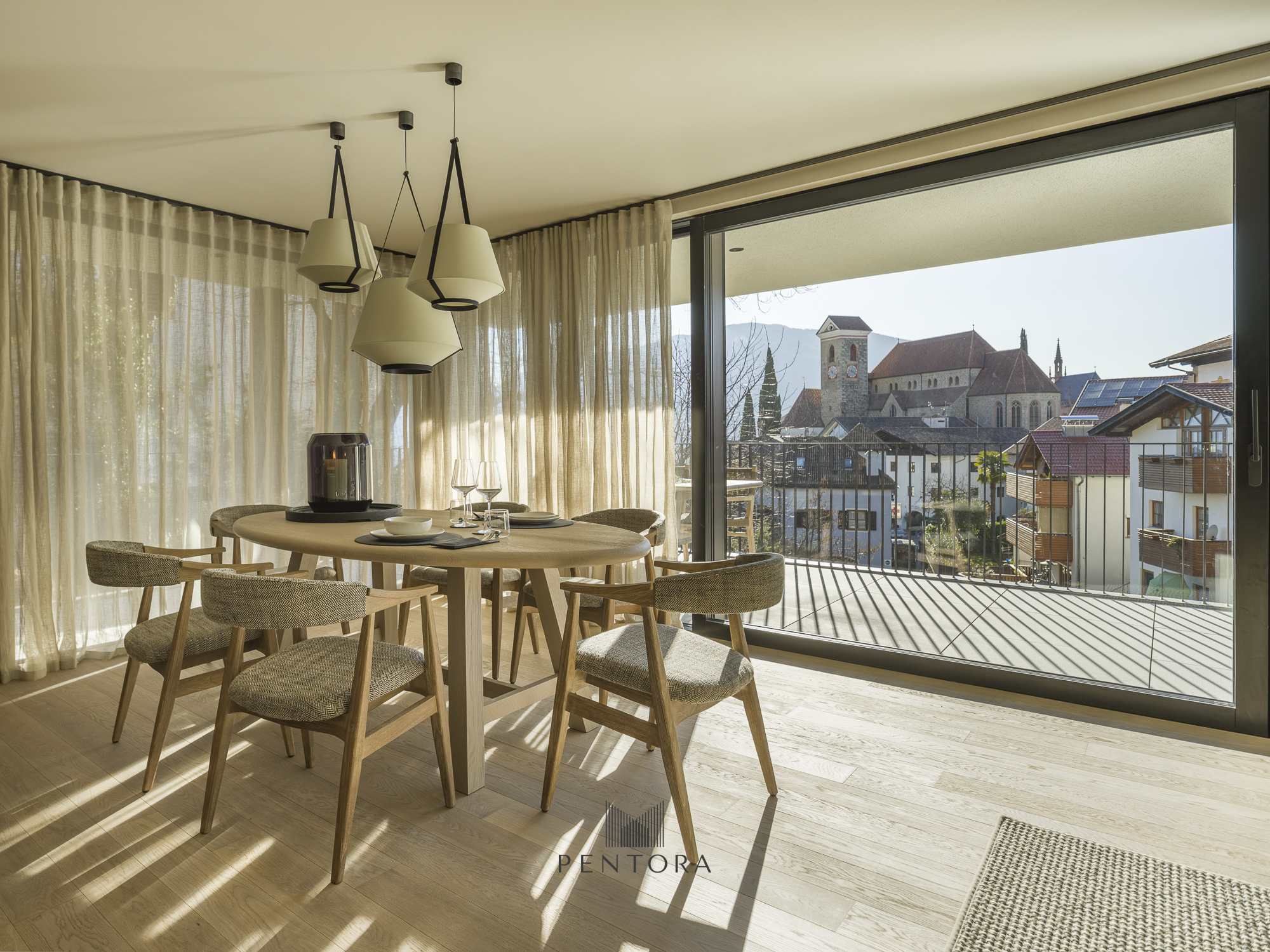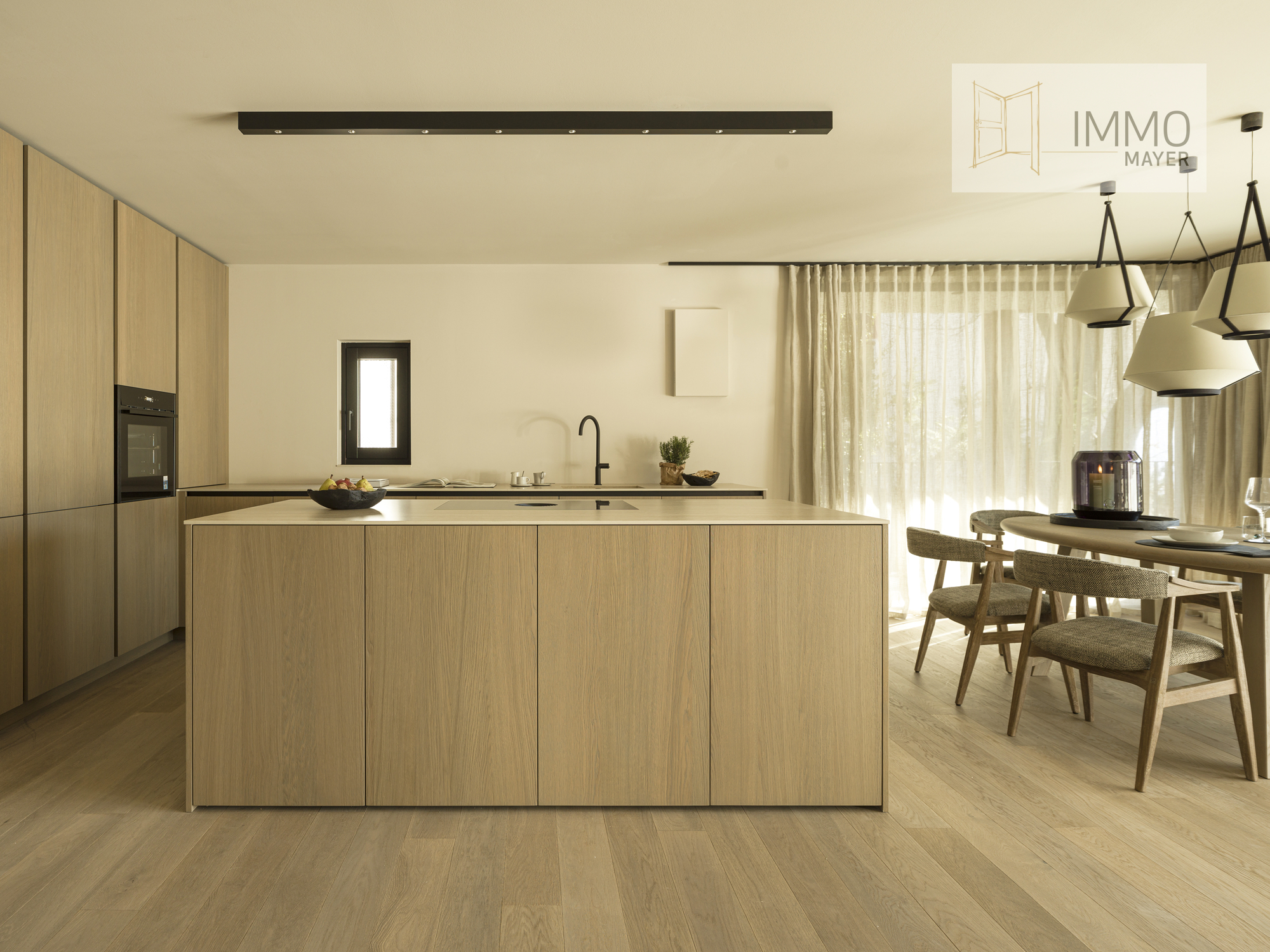Der offene Wohnbereich schafft ein Gefühl von Leichtigkeit und Eleganz. Bodentiefe, rahmenlose