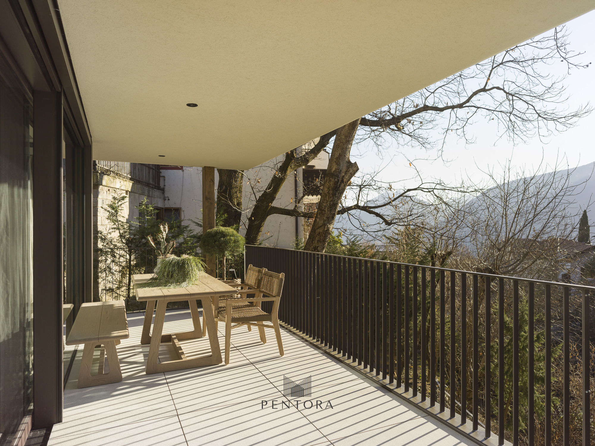Ein Zuhause, das Großzügigkeit und Ästhetik perfekt vereint: Die weitläufige Terrasse eröffnet