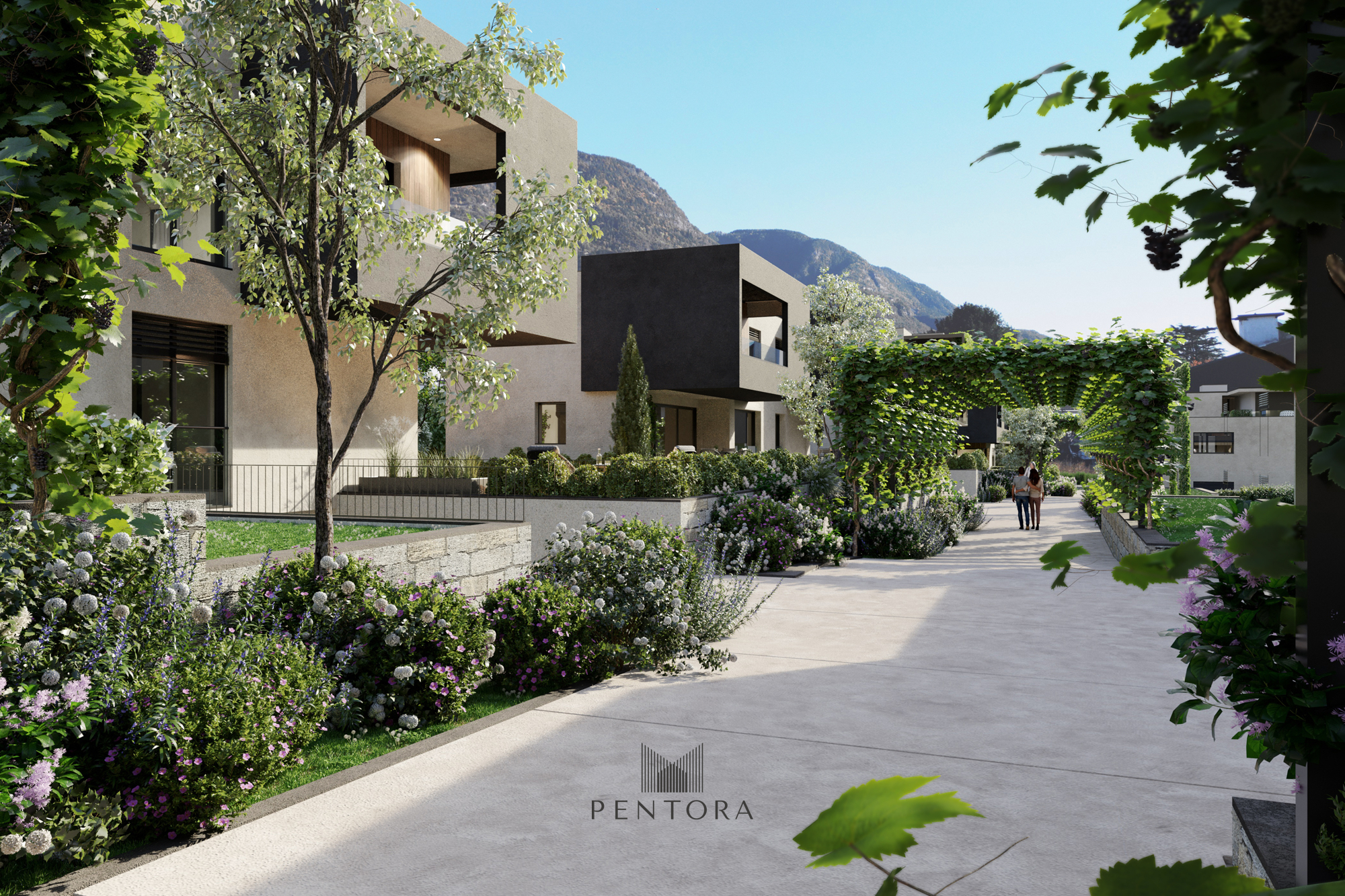 Die terrassenförmige Anordnung auf verschiedenen Höhenniveaus sorgt für maximale Privatsphäre. Die ideale Süd-westausrichtung lässt die Räume im natürlichen Licht erstrahlen und schafft eine helle, einladende Atmosphäre. Hier trifft durchdachte Architektur auf zeitloses Design, umgeben von einer sehr ruhigen Umgebung.