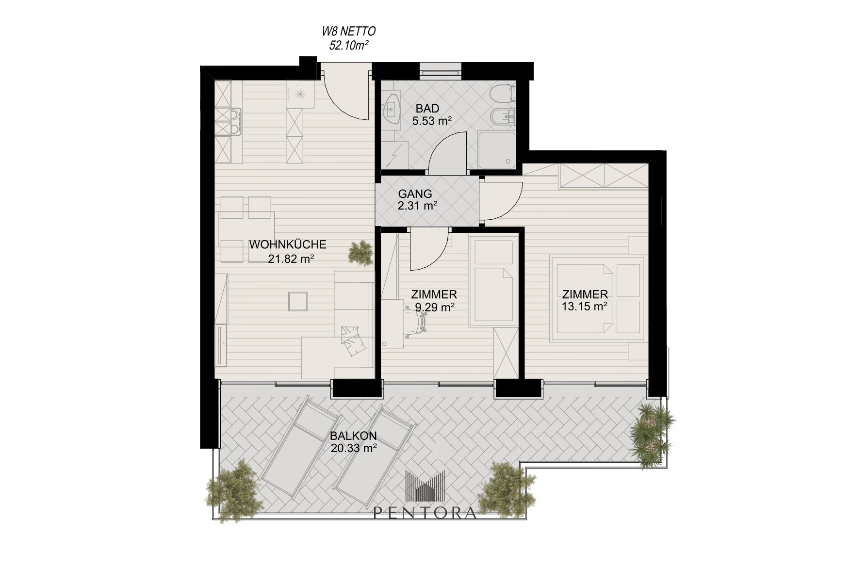 Ein echtes Highlight für Paare oder Alleinwohnende: Diese Wohnung mit ca. 52 m² Wohnfläche kombiniert modernen Stil mit hohem Komfort. Die großzügige Terrasse lädt zum Verweilen ein, während die sorgfältige Materialwahl für zeitlose Qualität sorgt. Perfekt für alle, die stilvoll wohnen möchten.