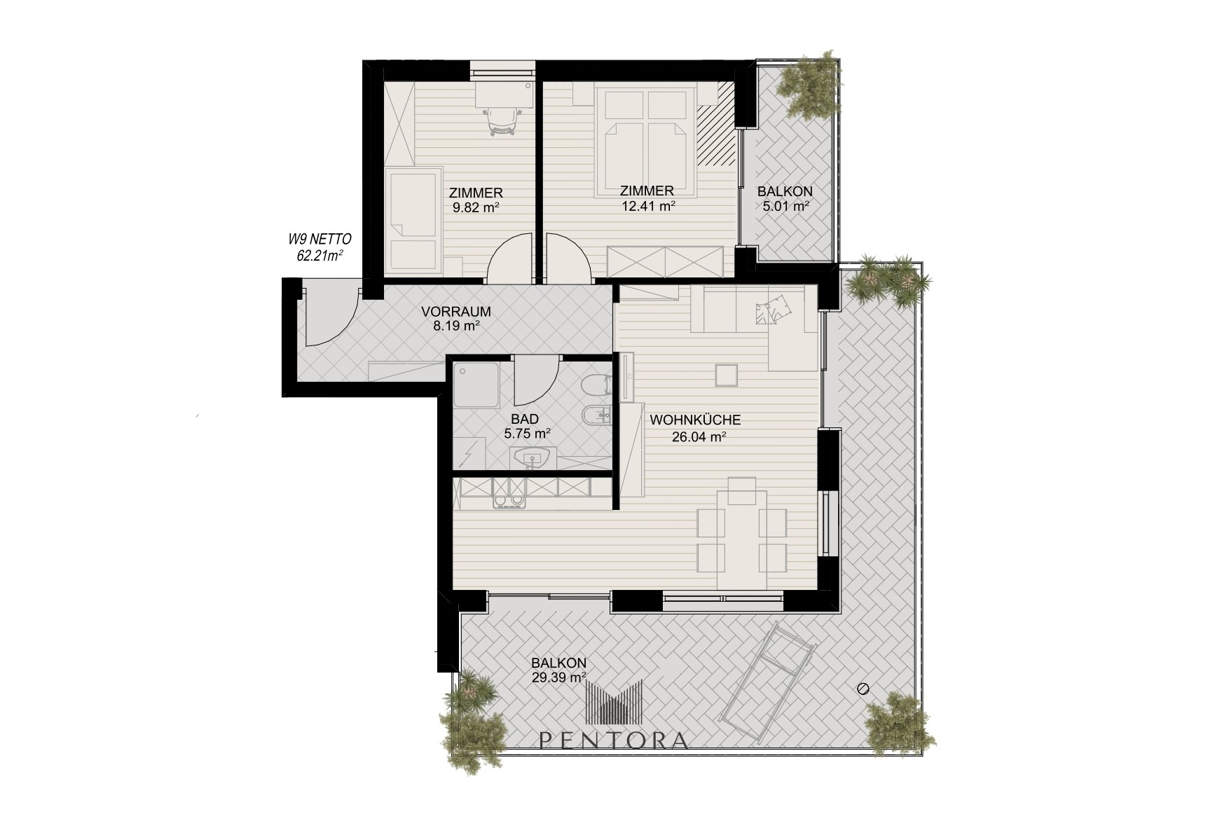 Nettowohnfläche: ca. 62 m²