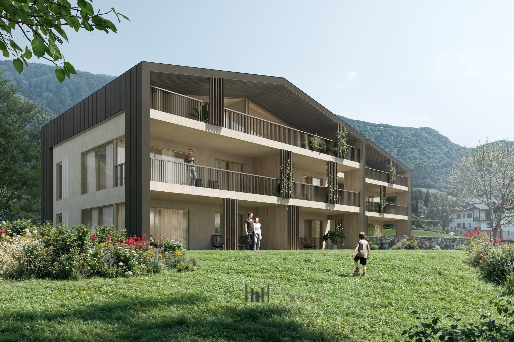 Zwischen Altstadt und Naherholung gelegen, befindet sich dieses neue Wohnprojekt im Meraner Stadtteil Obermais, einem der ältesten Wohnviertel der Stadt. Die ruhige Seitenstraße ist eingebettet in ein gepflegtes Umfeld, geprägt von Gärten und viel Grün. Die Wohnanlage entsteht etwas oberhalb der Straße, wodurch in jedem Stockwerk eine Aussicht auf die umliegende Berglandschaft gegeben ist. Gleichzeitig sorgt die Ausrichtung des Grundstücks für großzügige Privatgärten und eine offene, helle Wohnatmosphäre. Schulen, Nahversorger, Cafés und öffentliche Verkehrsmittel sind bequem zu Fuß oder mit dem Fahrrad erreichbar. Ein kurzer Spaziergang führt zur Passerpromenade und weiter in die Meraner Altstadt. Auch die Anbindung an die Hauptverkehrsachsen sowie an das Naherholungsgebiet Meran 2000 ist ideal.