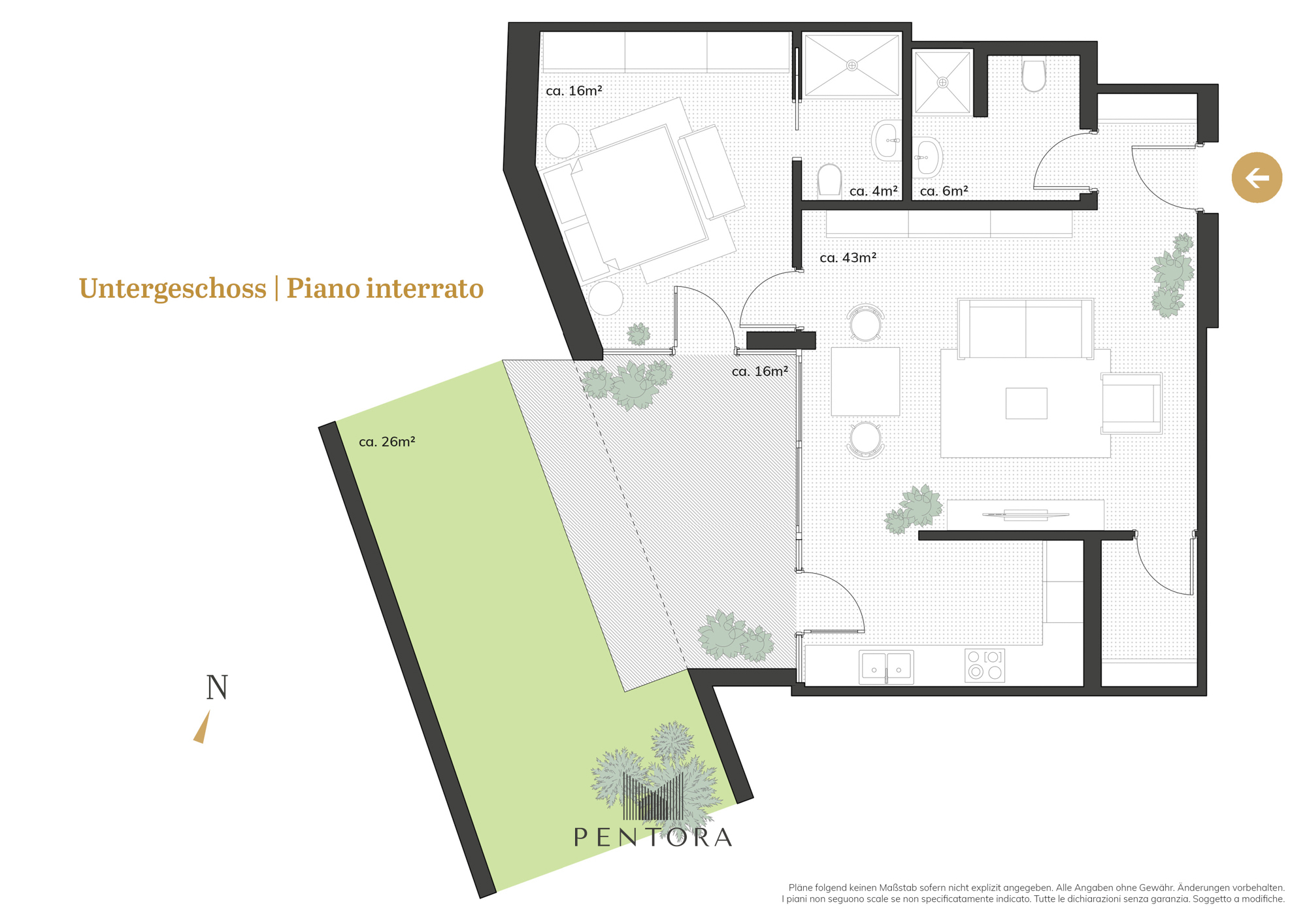 L‘attrezzatura non lascia nulla a desiderare. Riscaldamento a pavimento, sistema di casa intelligente, porte dal pavimento al soffitto e ascensore sono solo alcuni dei dettagli esclusivi. Gli appartamenti dispongono di spazi privati all‘aperto, che si tratti di un ampio giardino al piano terra o di una loggia o terrazza solarium ai piani superiori.