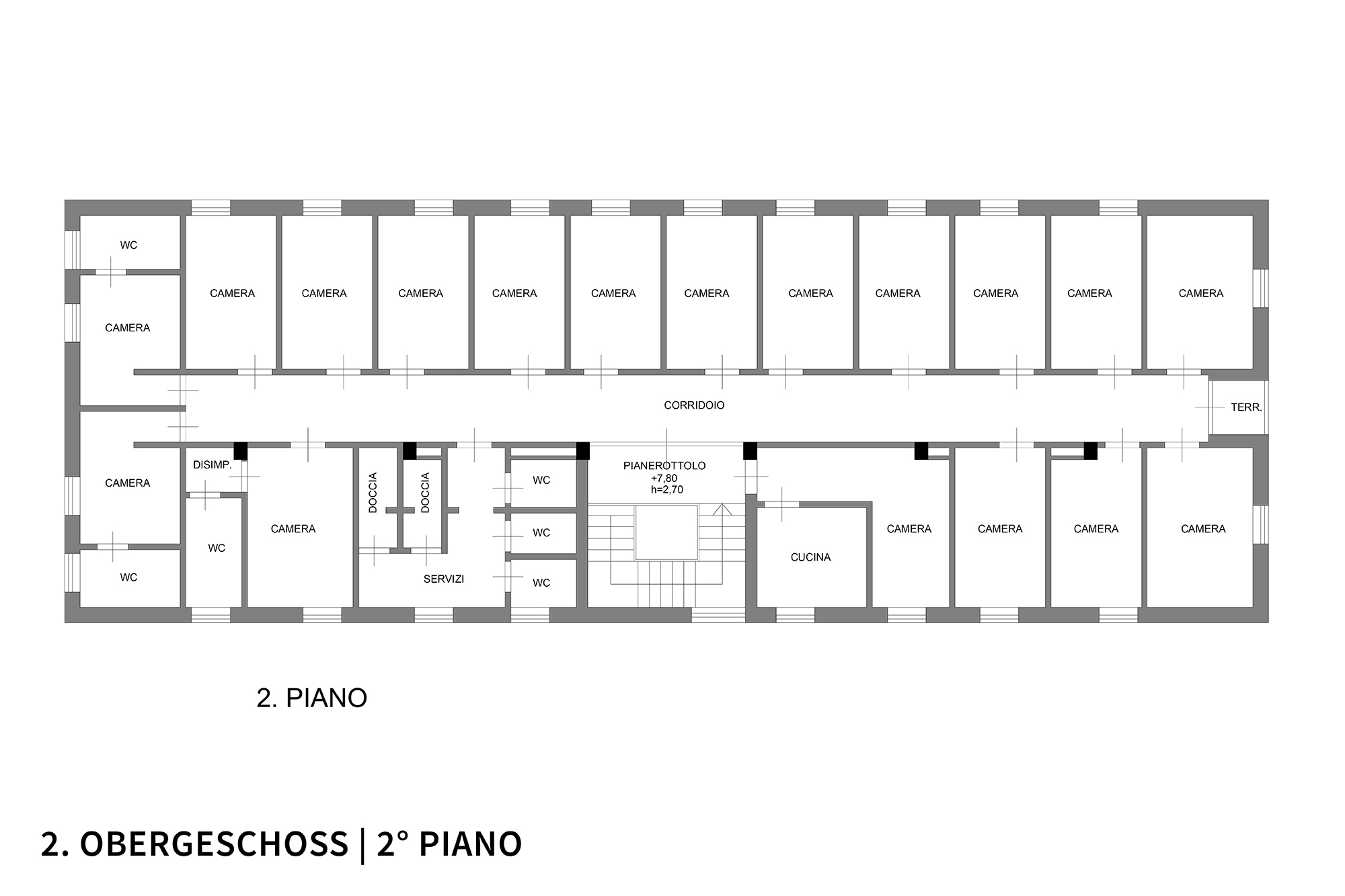Le planimetrie "studio di fattibilitá" fanno riferimento a progetto per un "smarthotel".
